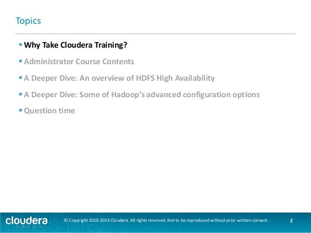 Our study materials for Cloudera Certification exam has been designed by the experts after an in-depth analysis of Cloudera recommended material. With such a high hit rate it becomes much easier to pass the exam. 213225820-Cloudera-Administrator-Training-for-Apache-Hadooppdf - Download as PDF File pdf Text File txt or read online.